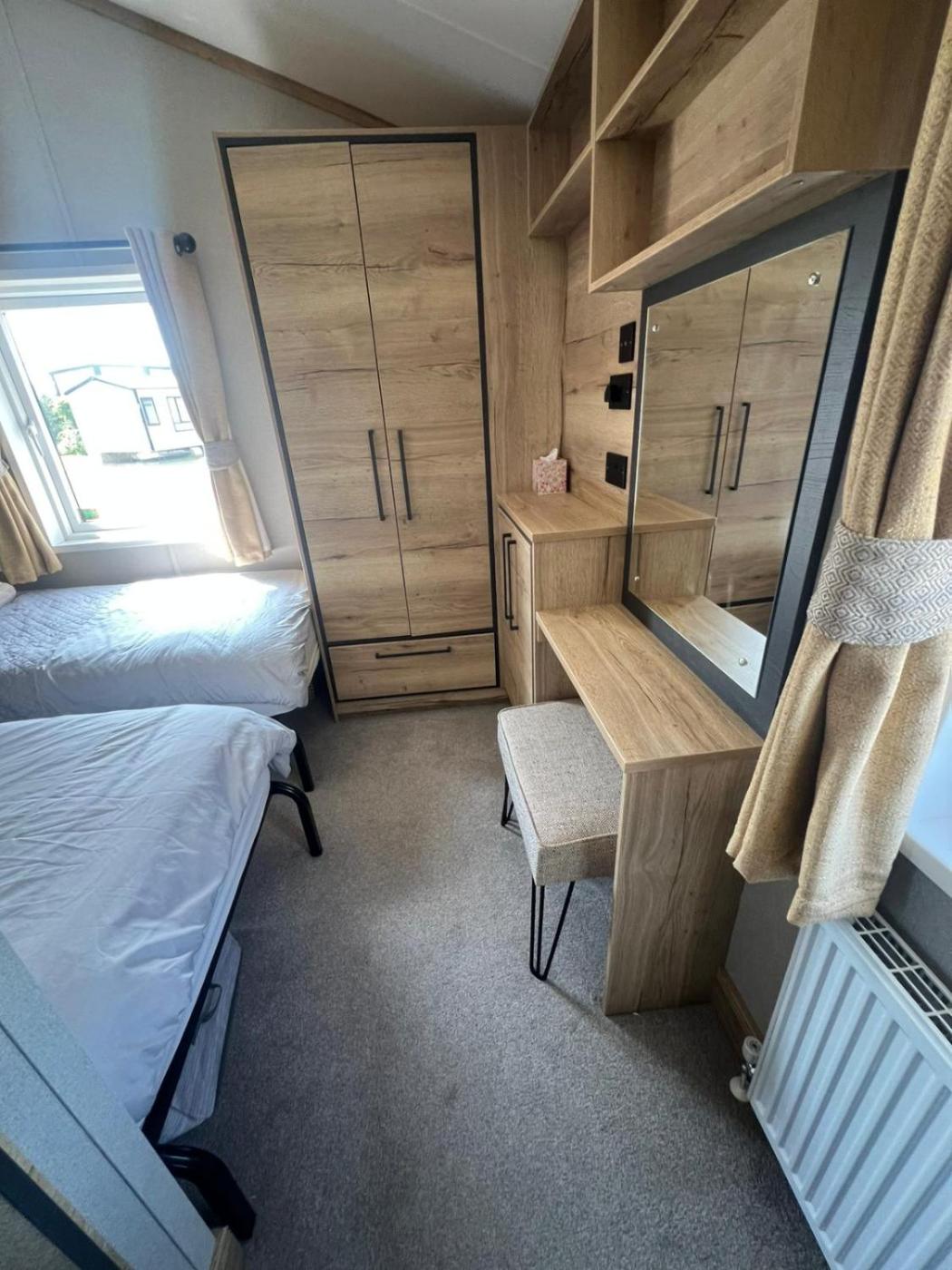 Mobile Home. This mobile home is comprised of 2 bedrooms, a seating area and 2 bathrooms with a bath and a shower. This mobile home features a tea and coffee maker, a dining area, a flat-screen TV and an outdoor dining area. The unit offers 3 beds.